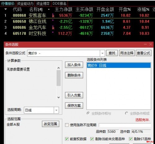 通达信集合竞价函数大全和组合条件公式预警
